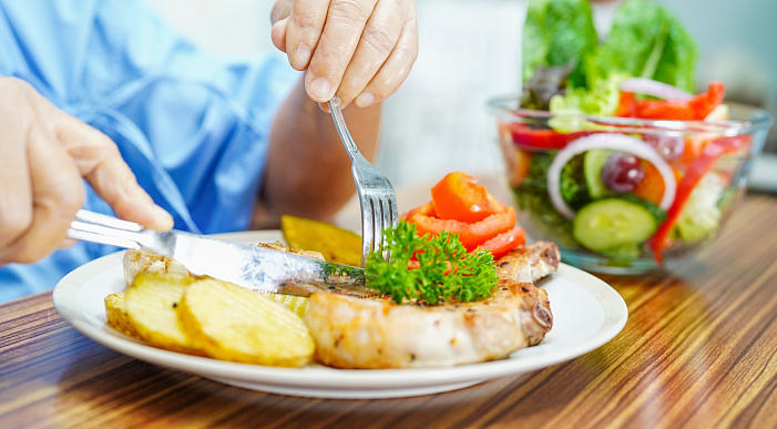 - Сбалансированное питание — отказ от быстрых углеводов и увеличение в рационе овощей, белков и сложных углеводов;